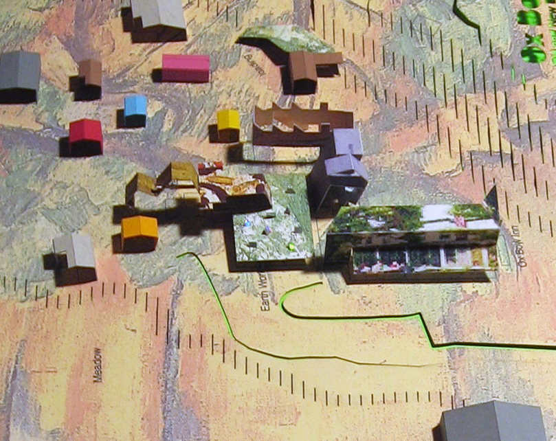 Inspired by both the primary activities of the Ox Bow School of Art and the competition directive to “Ask the question, Would I like to paint this scene?”, this proposal focused around scenes and seeing. In homage to painters of the late 19th century- Klee, Cezanne, Matisse and others, the surrounding landscape and existing buildings were envisioned as a painter composes a scene, with figures and grounds in a composition of back, middle and fore grounds. Characters were imagined being “in” the composition, seeing over a landscaped Earthwork Dining Hall, past vertical, reclining and stepped forms developed as guest rooms to the setting sun over Lake Michigan. The original Ox Bow Inn centers the composition, with its west facing porch and entranceways. The proposal extends a porch/dining facility to the north that becomes the focal point of the new addition. The Watch Tower, the Balcony and the Steps house the new guest rooms and are scaled in a manner sympathetic to the small buildings located throughout the campus and then clustered nearby, alongside and over the dining hall. The hall (Earthwork) is imagined as an open, well-lit space that acts as a gathering space for the entire campus. Adjacent to the Inn and the new guest rooms the hall looks on to the meadow and the lagoon beyond. The dining and service area is a simple space, glazed to the west and north, with an earthen roof supported by exposed wooden trusses.